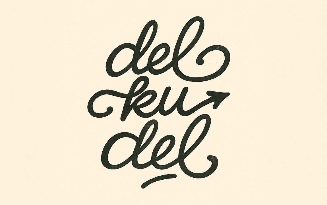 The visual identity reflects this attitude through expressive, hand-drawn lettering and unruly, looping lines that feel improvised and alive. Rather than creating a rigid or polished mark, I chose a playful, doodle-like typographic approach that suggests movement, curiosity, and creative chaos. The swirling lines and embedded illustrations echo the idea of journeys, detours, and cultural exploration, visually embodying the unpredictable yet intentional nature of Del Ku Del’s experiences.